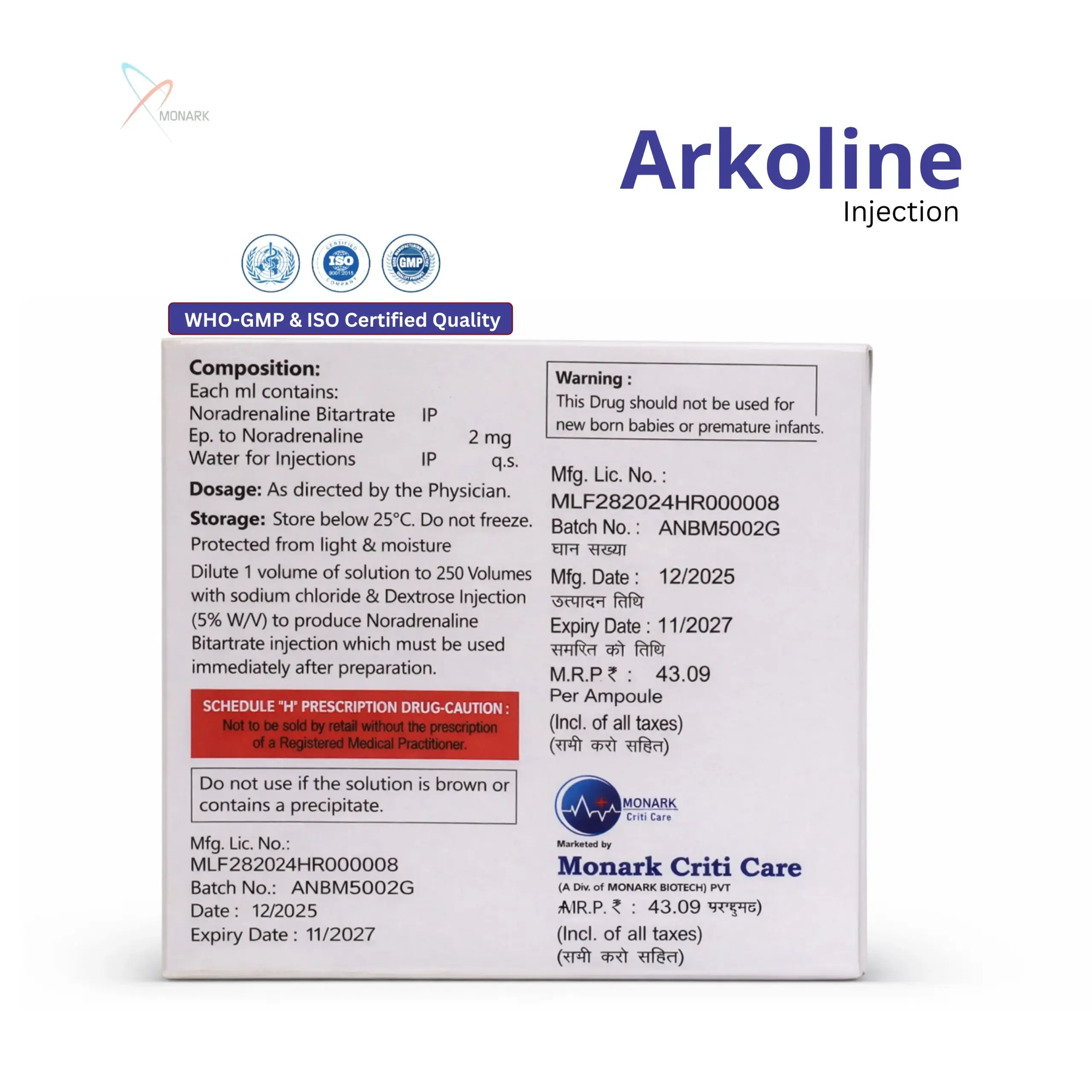 With proper medical supervision and controlled administration, Arkoline-2 continues to be a trusted solution for managing severe hypotension and shock.