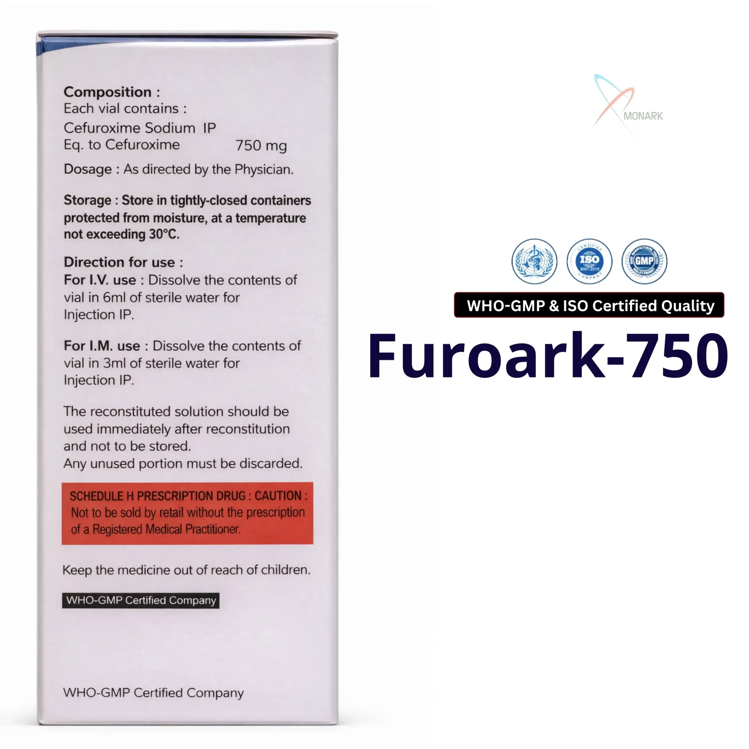 Furoark 750 should only be administered under medical supervision. Dosage depends on the type and severity of infection, patient age, and medical history. Patients with known allergies to cephalosporins should consult their doctor before use. Mild side effects like injection site pain or gastrointestinal discomfort may occur, but are generally manageable.