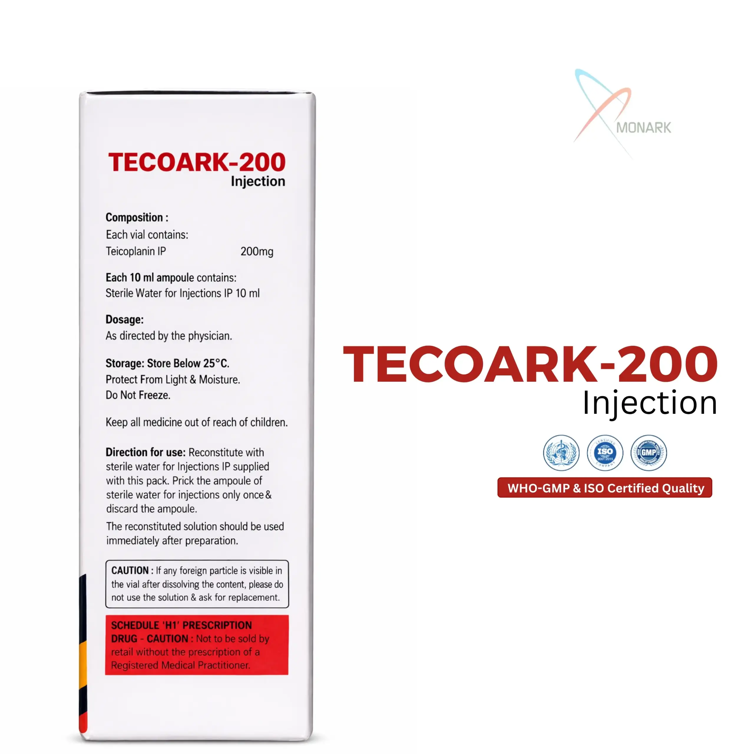 Tecoark-200 is administered via intravenous or intramuscular injection under medical supervision. Dosage varies depending on the severity and type of infection, as well as patient-specific factors.